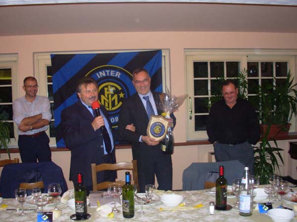 Per ringraziarlo della sua autorevole presenza, abbiamo regalato a Fausto Sala una bottiglia "magnum", con un'etichetta creata apposta per l'occasione, e una bellissima tavoletta in legno con il logo dell'Inter, intarsiato e colorato a mano! Erano presenti alla serata anche Vanni Panin, presidente di "Rovigo Nerazzurra" e coordinatore delle province di Padova e Rovigo, Stefano Stefani, presidente di "Mirano Nerazzurra" e coordinatore della provincia di Venezia, ed Emilio De Stefani, presidente dell'Inter club "I Leoni" di Lonigo e coordinatore della provincia di Vicenza!
