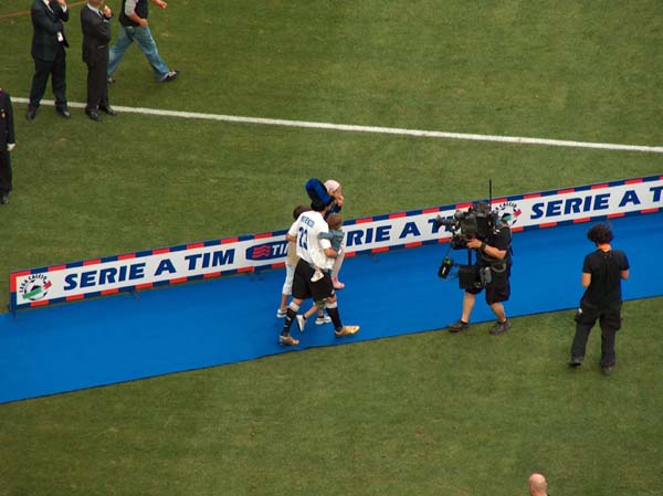 Davanti all'enorme tricolore disegnato dalla curva con migliaia di bandierine, si è svolta la premiazione dei nostri Campioni con la consegna della Coppa dello scudetto! I giocatori sono stati chiamati in campo, ad uno ad uno, da Paolo Bonolis e Roberto Scarpini! Sono stati premiati anche i giocatori della Primavera e dei Pulcini, anch'essi laureatisi Campioni d'Italia! Non è mancato un commosso ricordo ad un grande calciatore e ad un grandissimo uomo: Giacinto Facchetti.